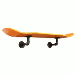 Floating Industrial Style Maple Skateboard Deck Shelf With Pipe Mounting System 7.75″ Neon Orange