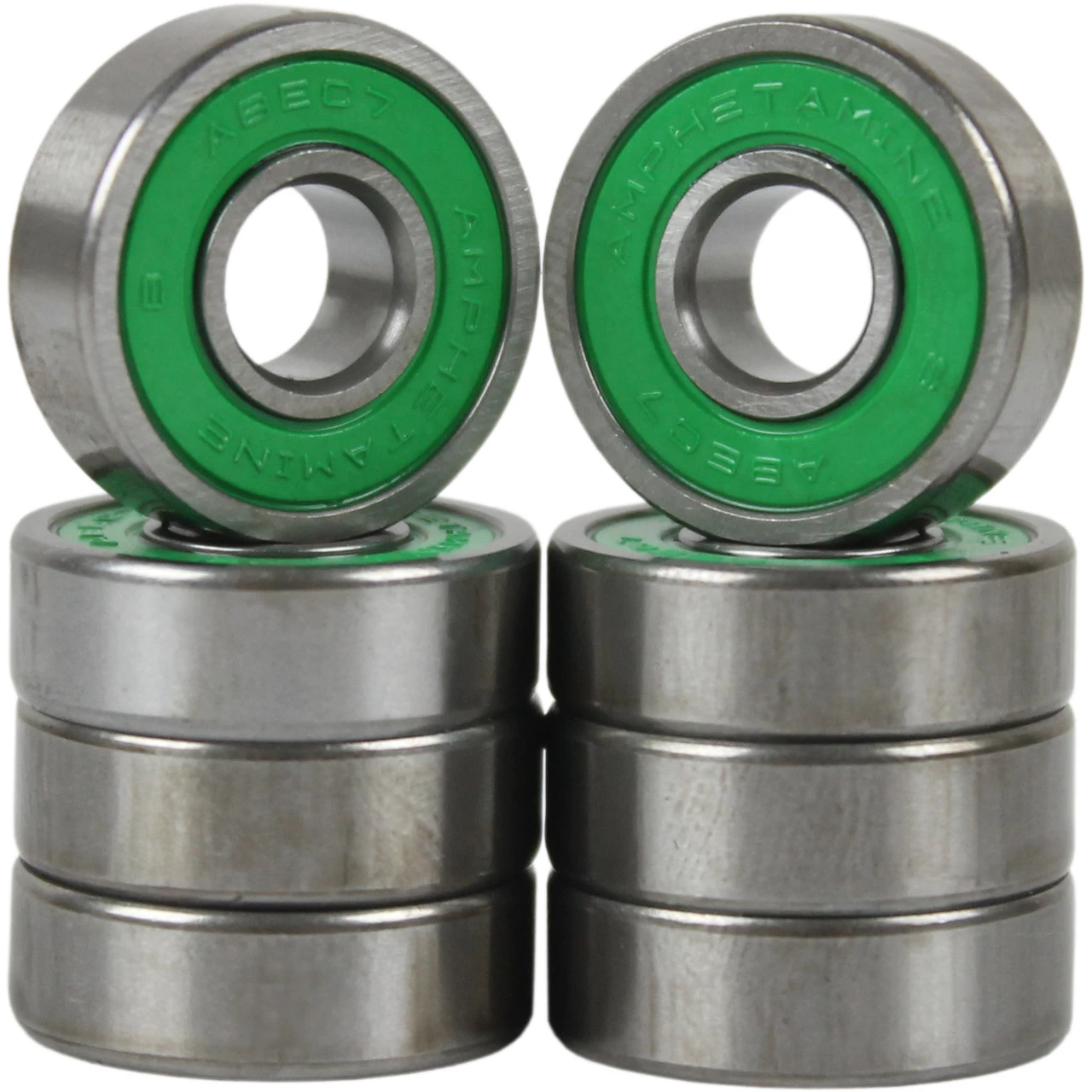- PRODUCTION – Amphetamine ABEC 7 bearings have 8 hardened ball bearings for impact absorption and gas-washed surfaces to provide less friction. Ensuring a smooth ride.