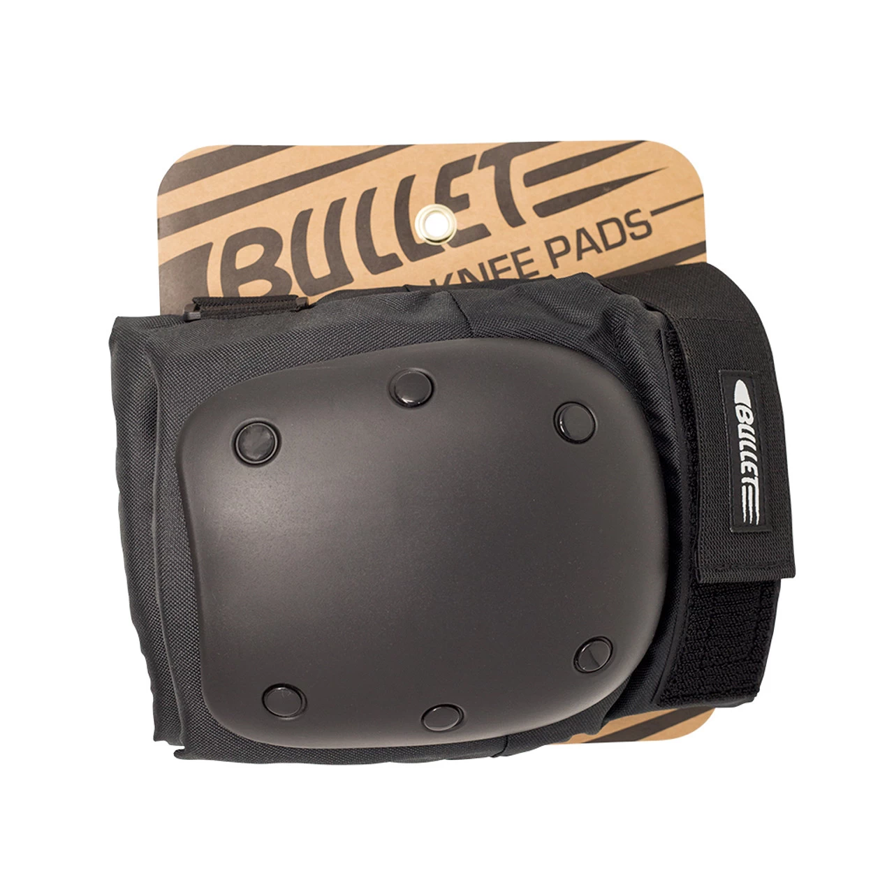 Bullet Knee Pads in Black, elbow protection for all them bones. This is a perfect all-around pad for beginning to intermediate riders. Sturdy and durable nylon-cordura construction. Comfortable neoprene backing, with velcro adjustable straps, and durable plastic caps. Perfect all around pads for beginning to intermediate riders.