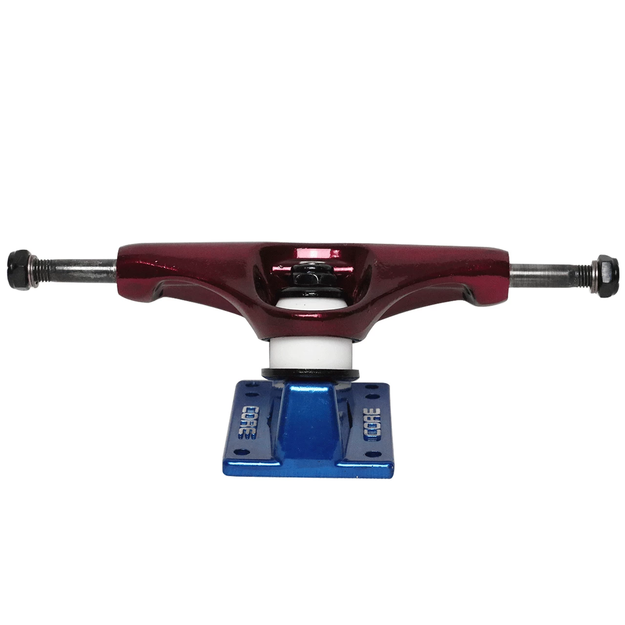 Core Trucks have offered more than 20 years of satisfactory performance and remain the top performing truck for skaters on a budget who don’t want to sacrifice quality. Now venturing into weight saving technology, these core trucks offer hollow kingpins which simultaneously lower the weight of the truck while increasing strength and performance. Featuring hollow body kingpins, lightweight aluminum alloy hangers, heavy duty baseplates, and premium USA Made Bushings and Pivot Cups. Super high rebound (SHR) bushings and pivot cups offer a responsive, smooth, and consistent ride. All Core Trucks are assembled in the USA. Size 5.0 – 7.75″ Axle Length – Fits Decks 7.5″ – 8.0″.