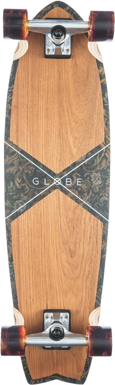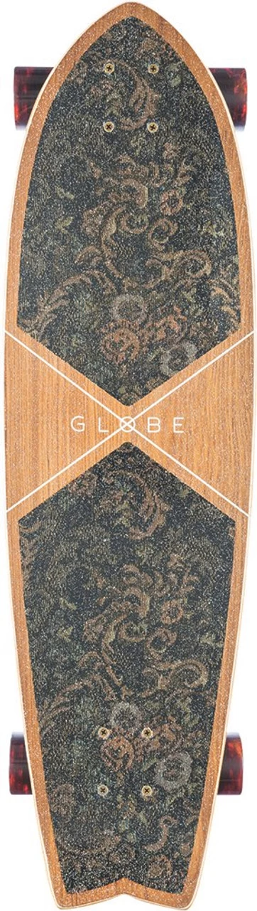 Surf inspired cruiser with clear broadcast grip and conical Wheel. SIZE: 33” x 9.75” x 22.25”wb. CONCAVE: Mellow concave with kick tail. TRUCKS: 6.0” Slant trucks. Wheel: 62mm 83a Wheel. CONSTRUCTION: Fabric inlayed panels, spliced with teak wood. Clear broadcast grip.