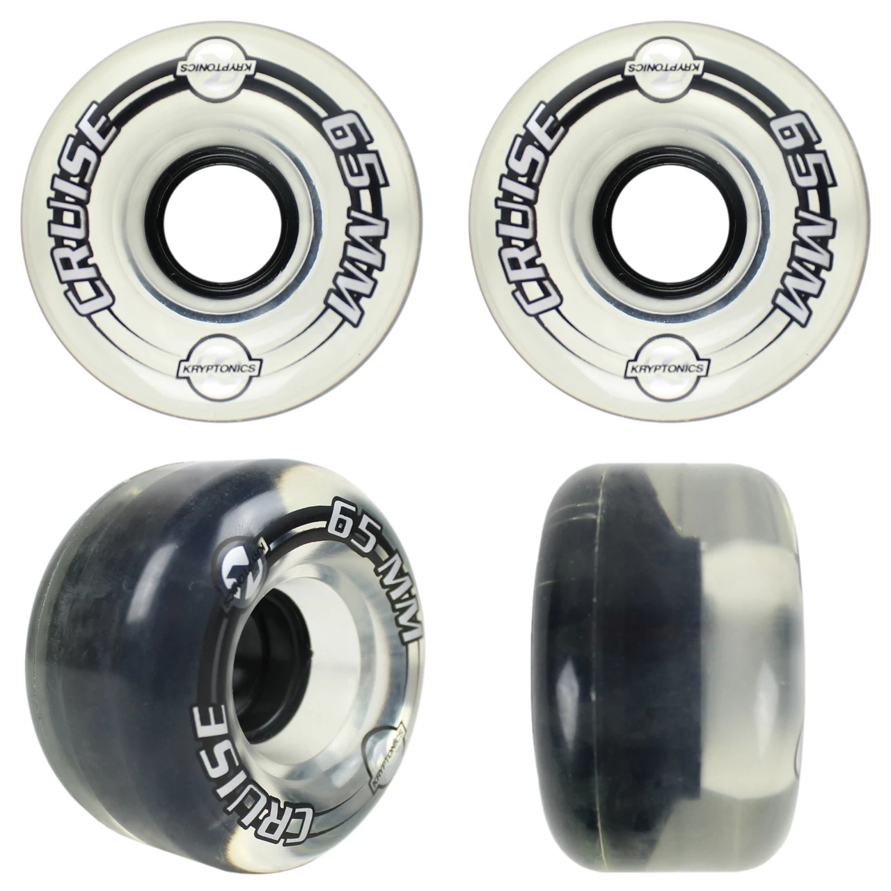 Kryptonics offers the best time-tested wheels on the market. Year after year they have the best skateboarding formulas on the market. This listing inclues a set of 4 KRYPTONICS CRUISE CLEAR 65MM 80A Wheels.