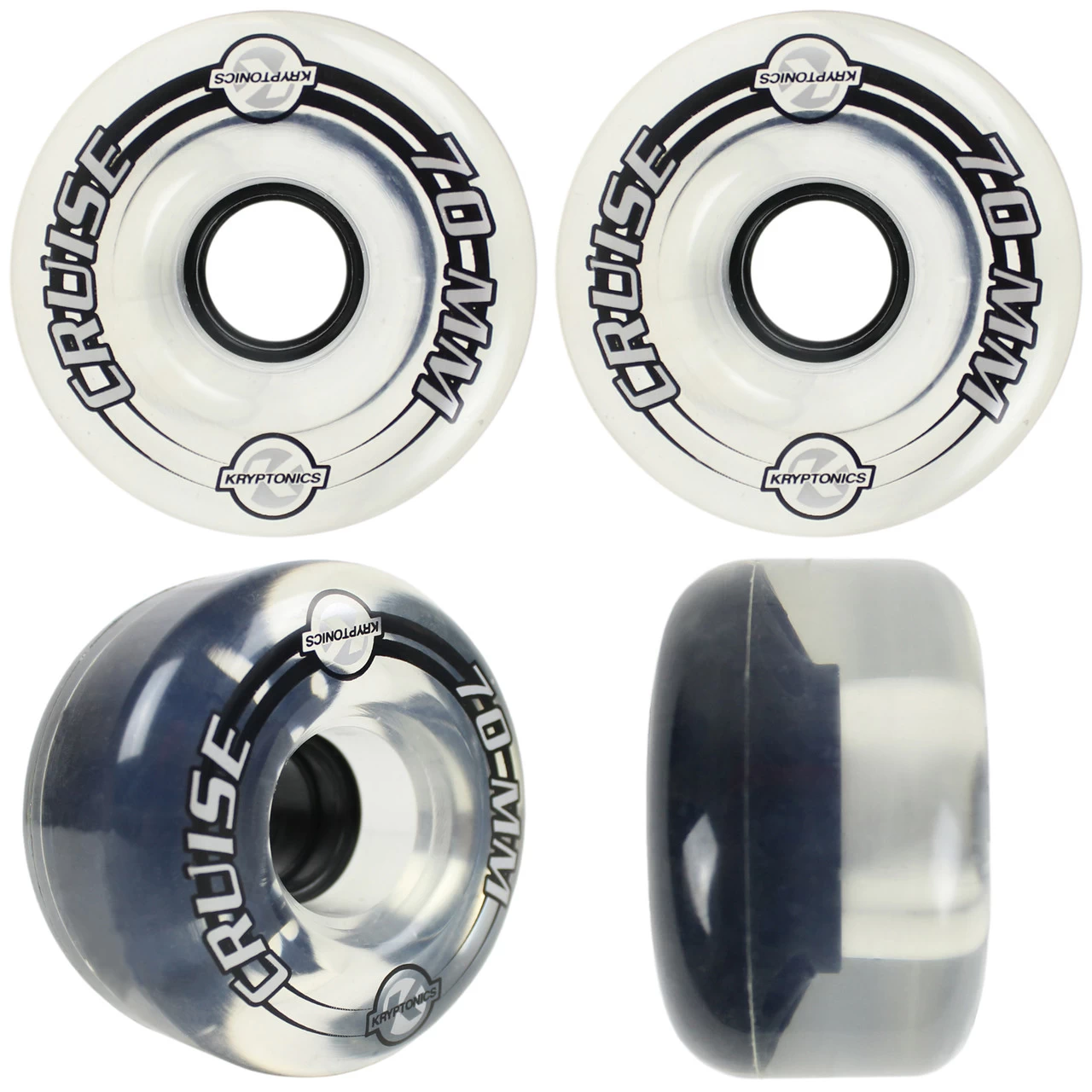 Kryptonics offers the best time-tested wheels on the market. Year after year they have the best skateboarding formulas on the market. This listing inclues a set of 4 KRYPTONICS CRUISE CLEAR 70MM 80A Wheels.
