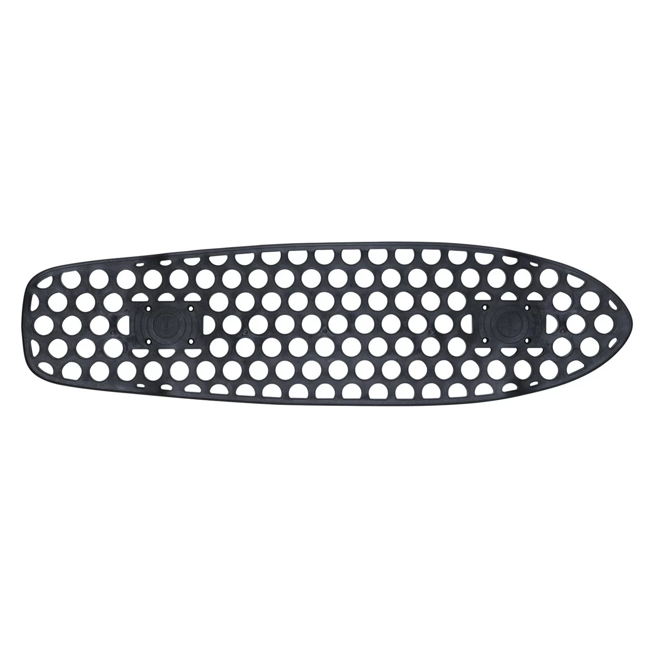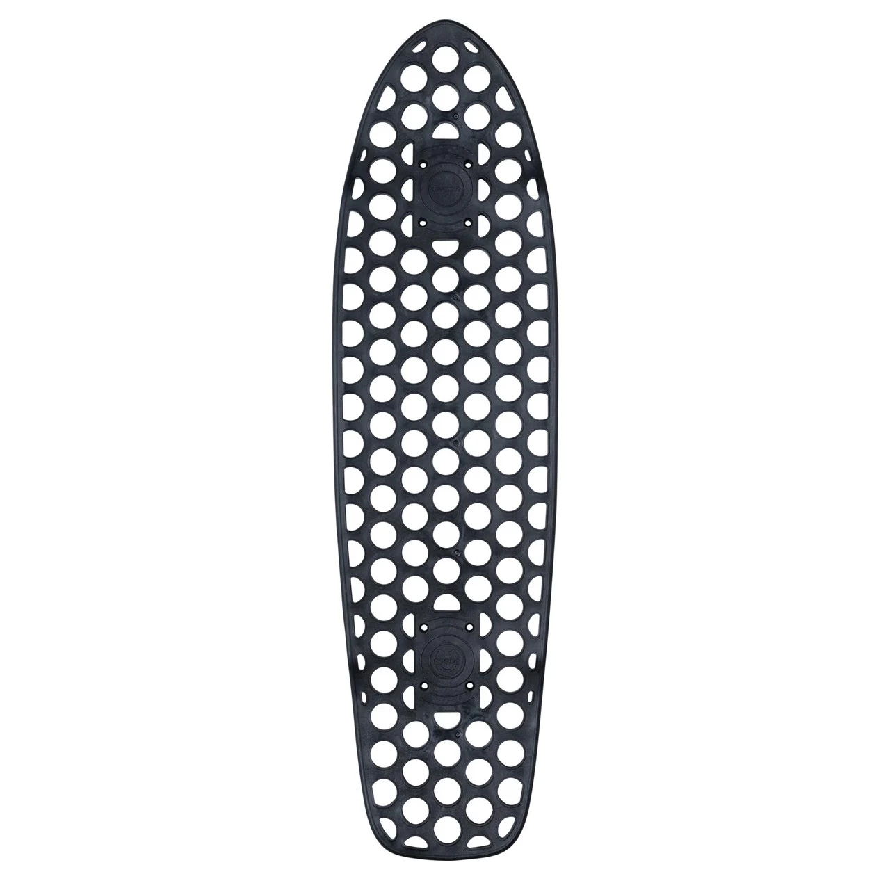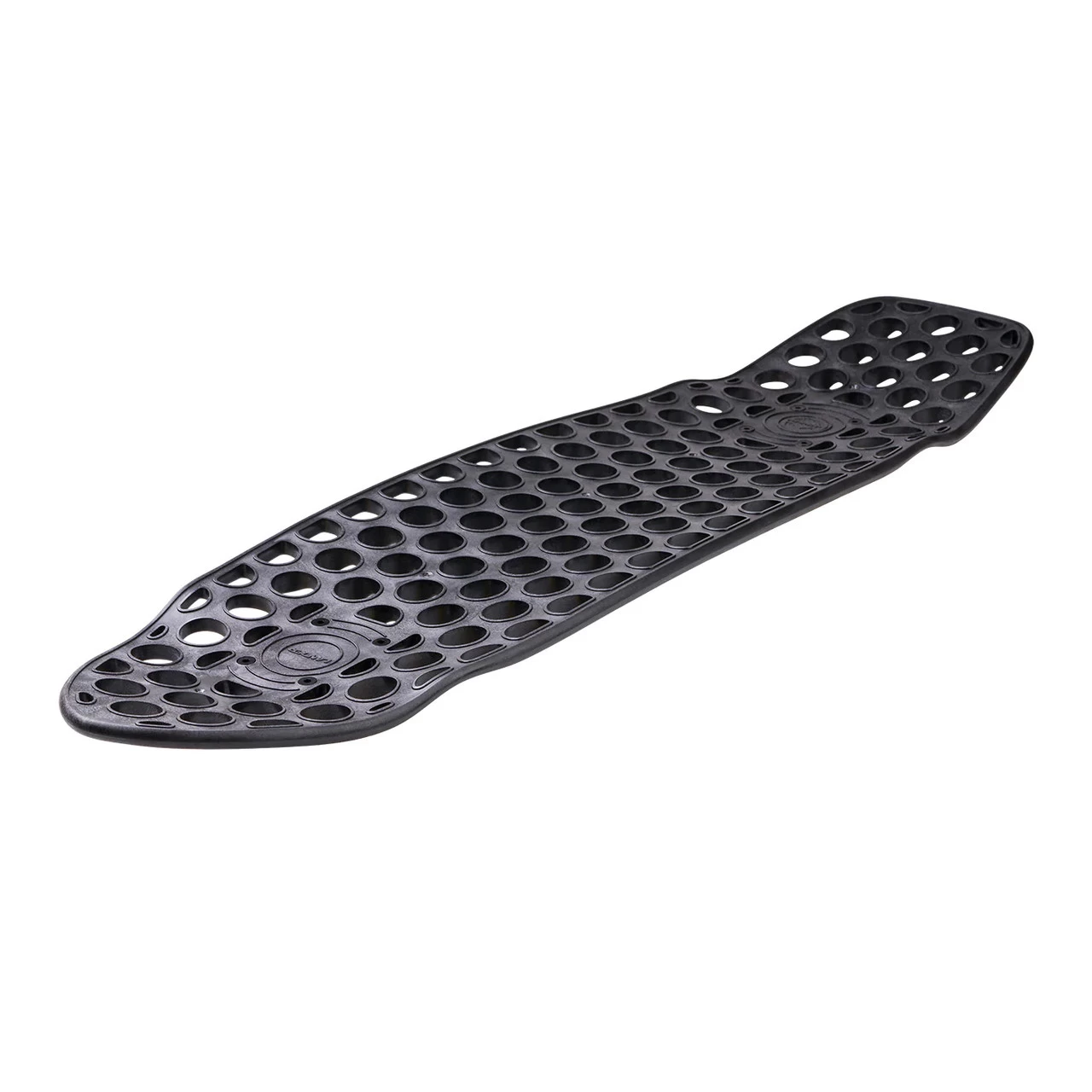 Lander decks are made from a material blend that utilizes recycled nylon and glass-fiber reinforcement. The bottom ribs give the deck a solid structure while soaking up road chatter and decreasing foot fatigue. The unique hole pattern provides superior traction, even in wet conditions, and allows for a slight torsional flex that lends itself to quick cuts and effortless carving.