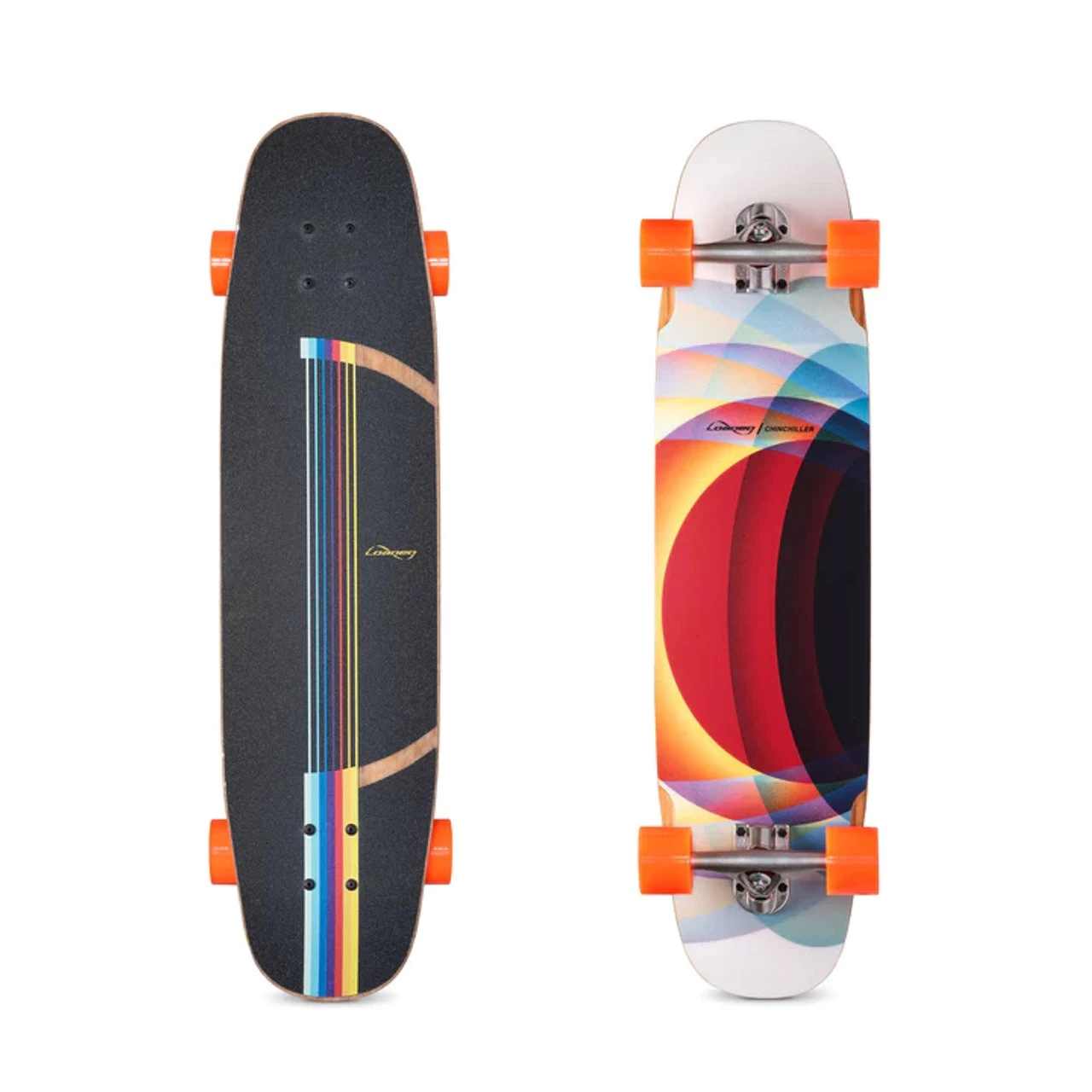 Compact and comfy, the Loaded Chinchiller is a carving and pumping board designed for maximum fun. Mild rocker and concave, subtle flex, and easy handling make it accessible and intuitive, while the symmetrical shape and mellow kicks offer the versatility to add a bit of freestyle and freeride spice to your daily ride.