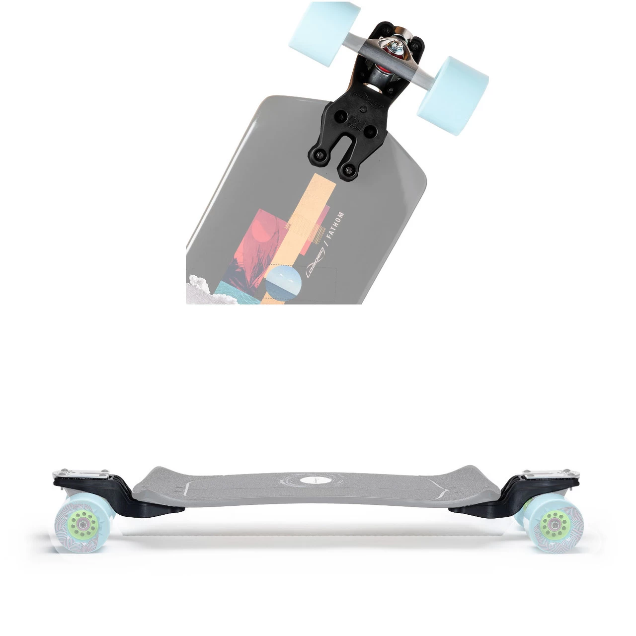 Lowers ride height by about 1.5″ / 3.8 cm compared to a top mounted skateboard