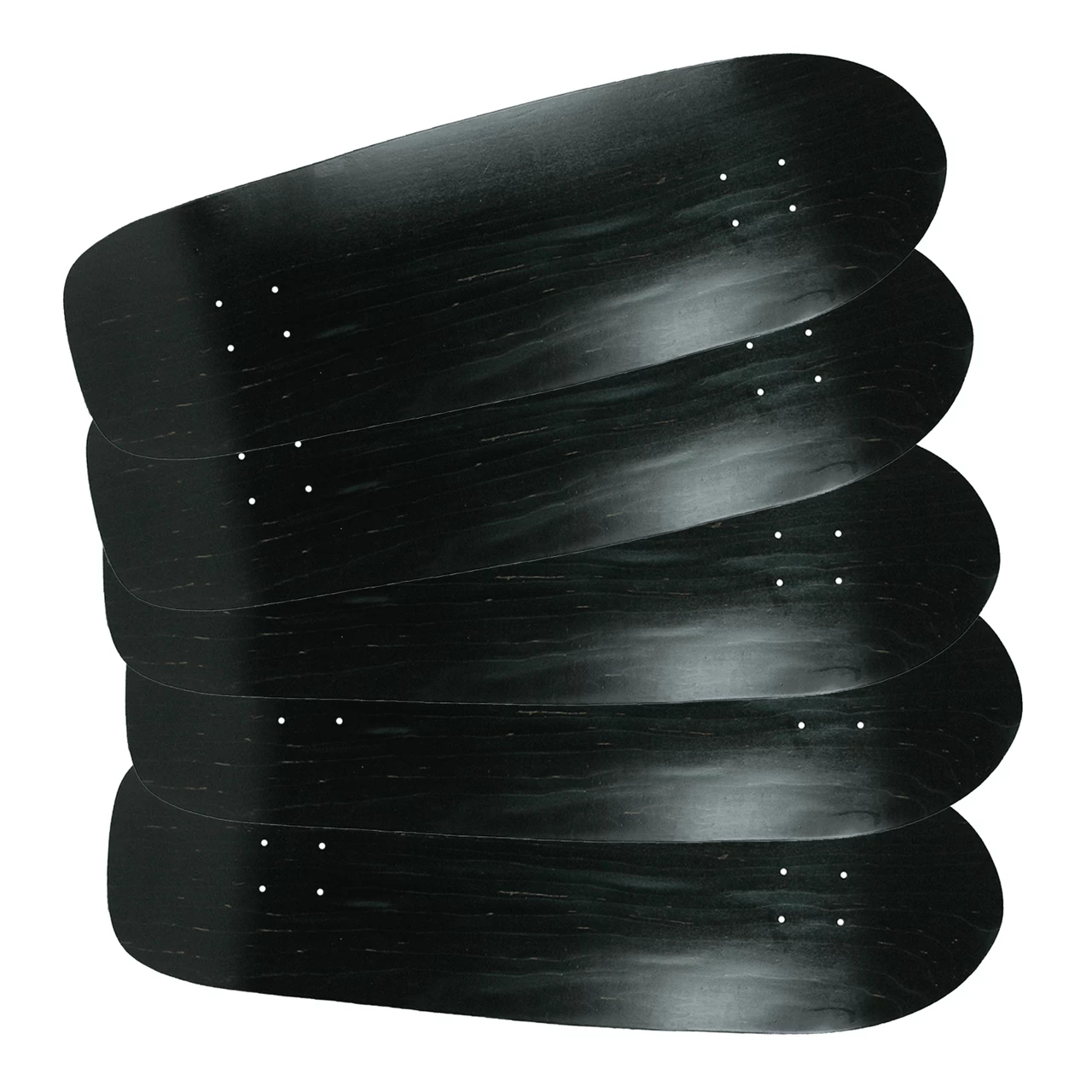 Buy in bulk and save. This old school shaped skateboard deck features the full body shape with a modern concave. This board features a large kicktail and also features a kicked nose. The holes are drilled with the new-school standard bolt pattern so you can mount any of your favorite trucks on this board. Blank boards are sweet for customizing, if you don’t want to ride it, you can paint it and hang it! Measures 10″ x 33″ with a 15.75″ wheelbase. This 5-Pack Includes all Stained Black decks.