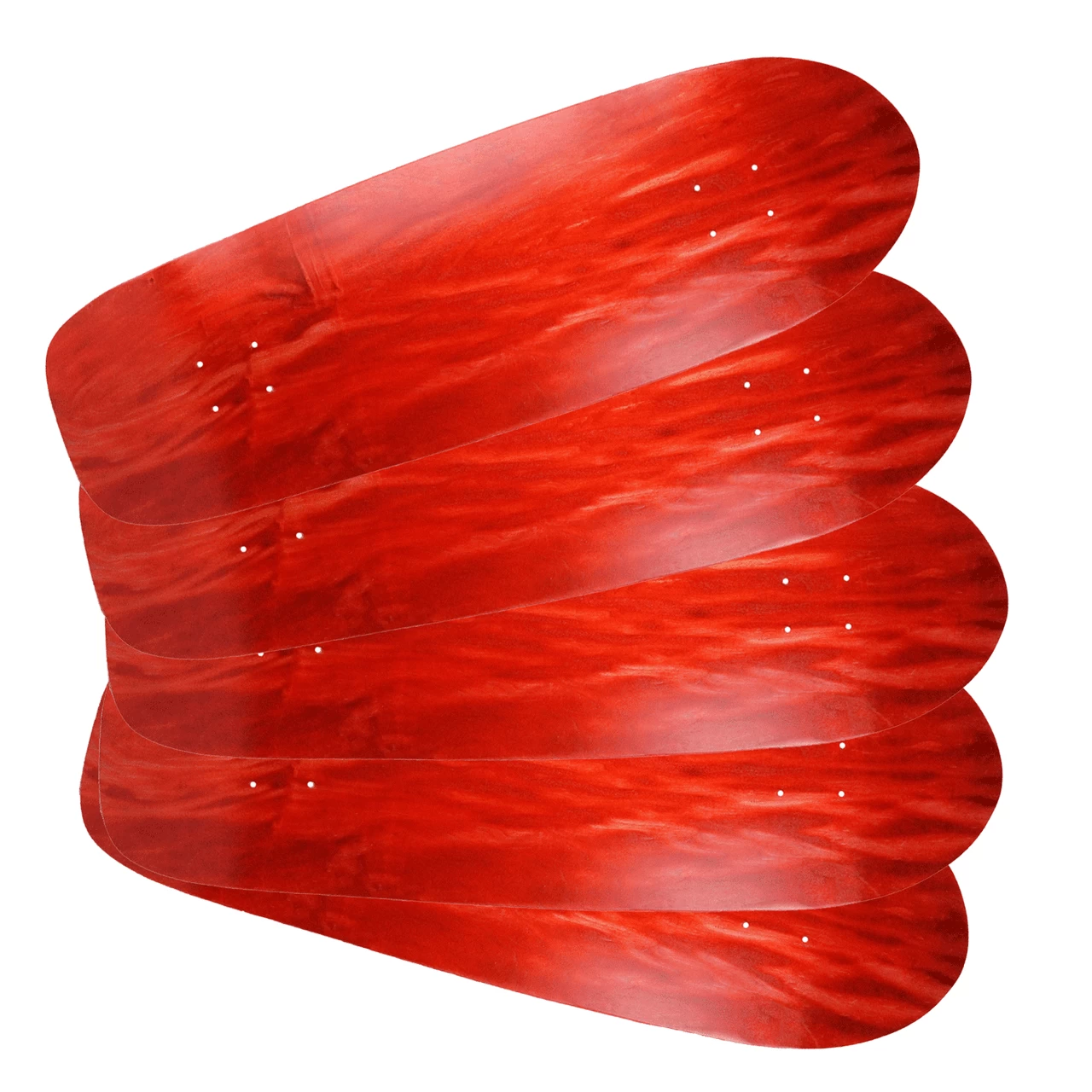 Buy in bulk and save. This old school shaped skateboard deck features the full body shape with a modern concave. This board features a large kicktail and also features a kicked nose. The holes are drilled with the new-school standard bolt pattern so you can mount any of your favorite trucks on this board. Blank boards are sweet for customizing, if you don’t want to ride it, you can paint it and hang it! Measures 10″ x 33″ with a 15.75″ wheelbase. This 5-Pack Includes all Stained Red decks.