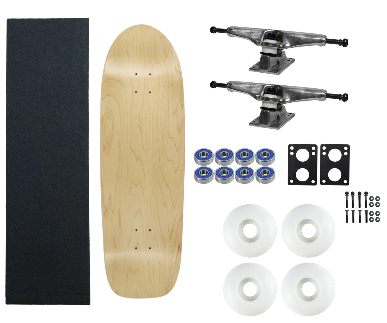 This complete old school skateboard package arrives unassembled so you can set it up however you want. The blank deck is perfect for customization! This package includes everything you need to build your skateboard including Core Hollow Trucks and 58mm Wheels. This old school skateboard deck features the full body shape with a modern concave, large kicktail, and a kicked nose. Measures 10” x 33” This board is made with 100% North American Maple. Core trucks feature hollow body kingpins, lightweight aluminum alloy hangers, heavy duty baseplates, and premium USA Made Bushings and Pivot Cups. Super high rebound (SHR) bushings and pivot cups offer a responsive, smooth, and consistent ride. 58mm 97A wheels are perfect for both street and park riding. Also includes precision bearings, 6mm riser pads, 1.25″ hardware, and a sheet of 10″ x 34″ Black Diamond Griptape.
