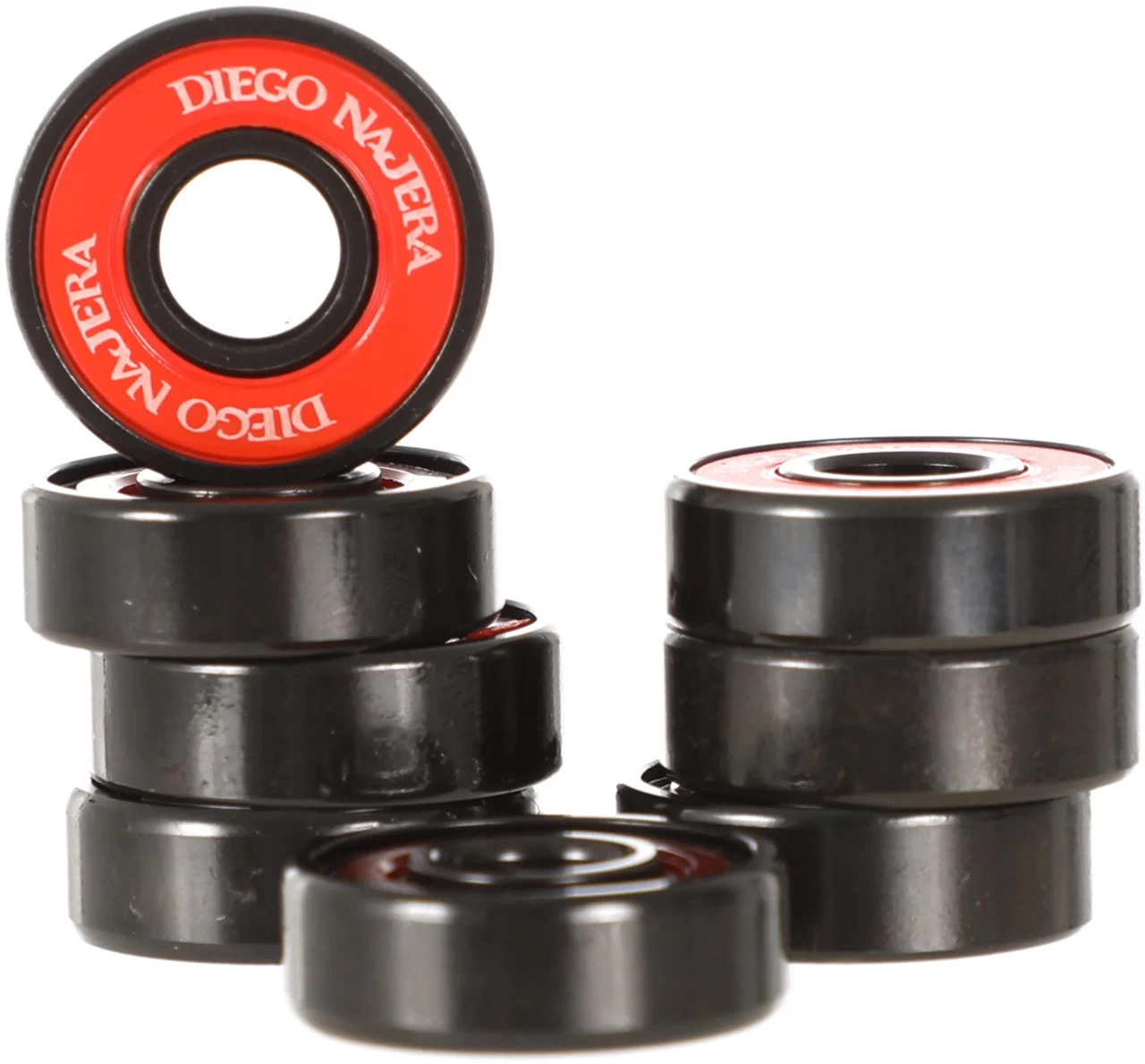 Diego Najera Signature bearings from Nothing Special. These signature bearings maximize speed, longevity and durability. Bearing spacers and washers are included to further your bearings top end speed as well as reduce overall friction while riding. Nothing Special bearings come in a case so you can store the when you are not using them.