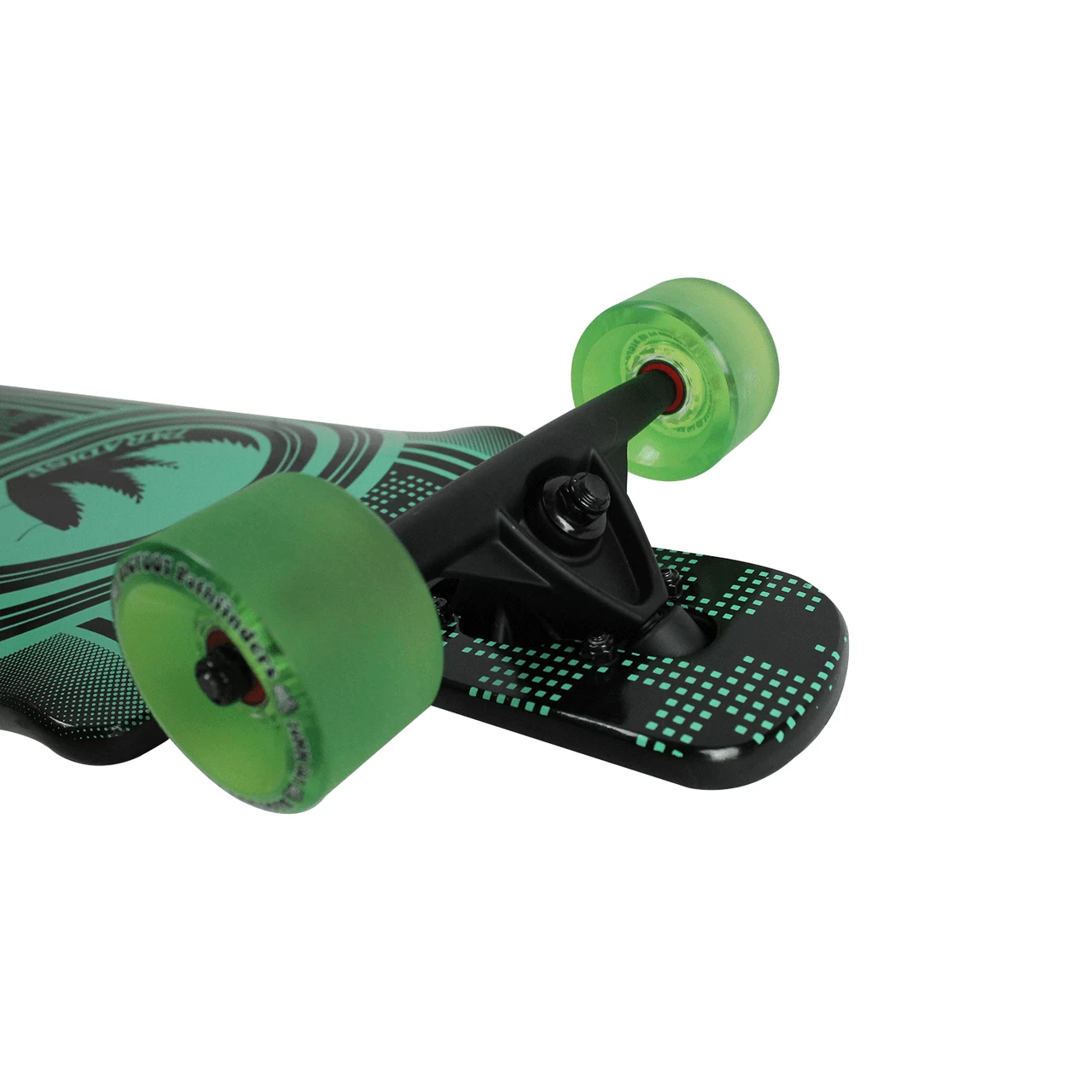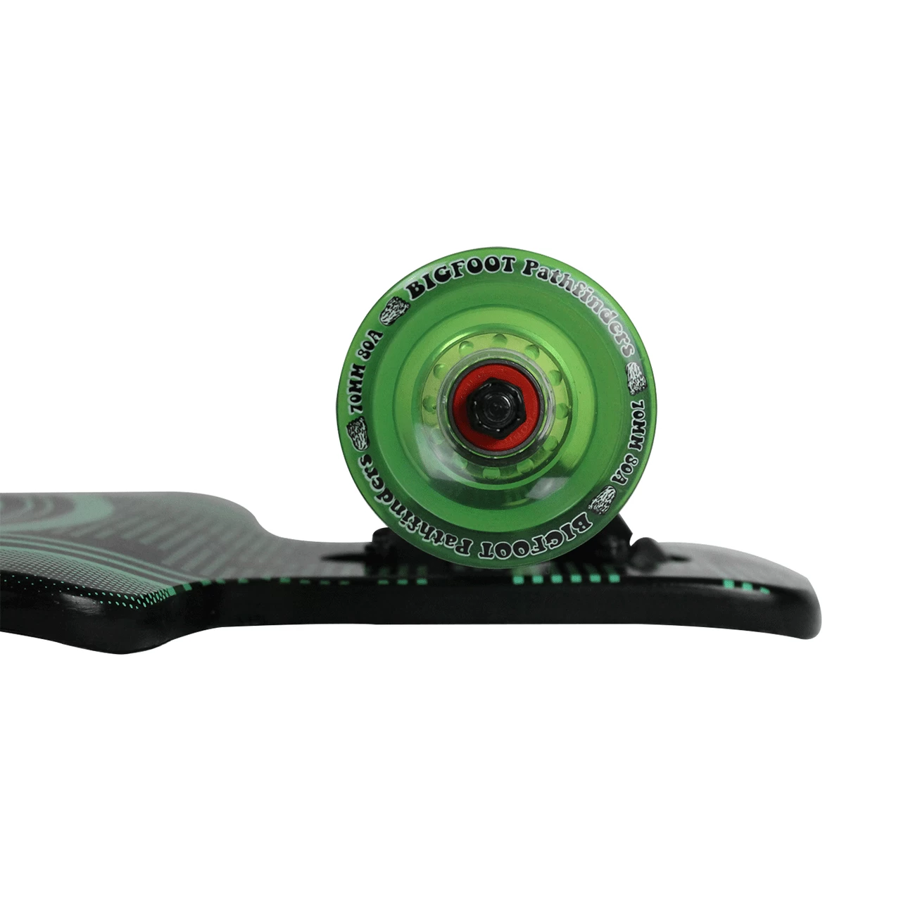 Board Specifics: Size: 10″ x 40″. Type: Freestyle Drop Through. Graphic: Neo. Construction: Canadian Maple. Trucks: 180mm Downhill Black. Bigfoot Wheels: 70mm 80A Pathfinders. Grip: Black Die Cut