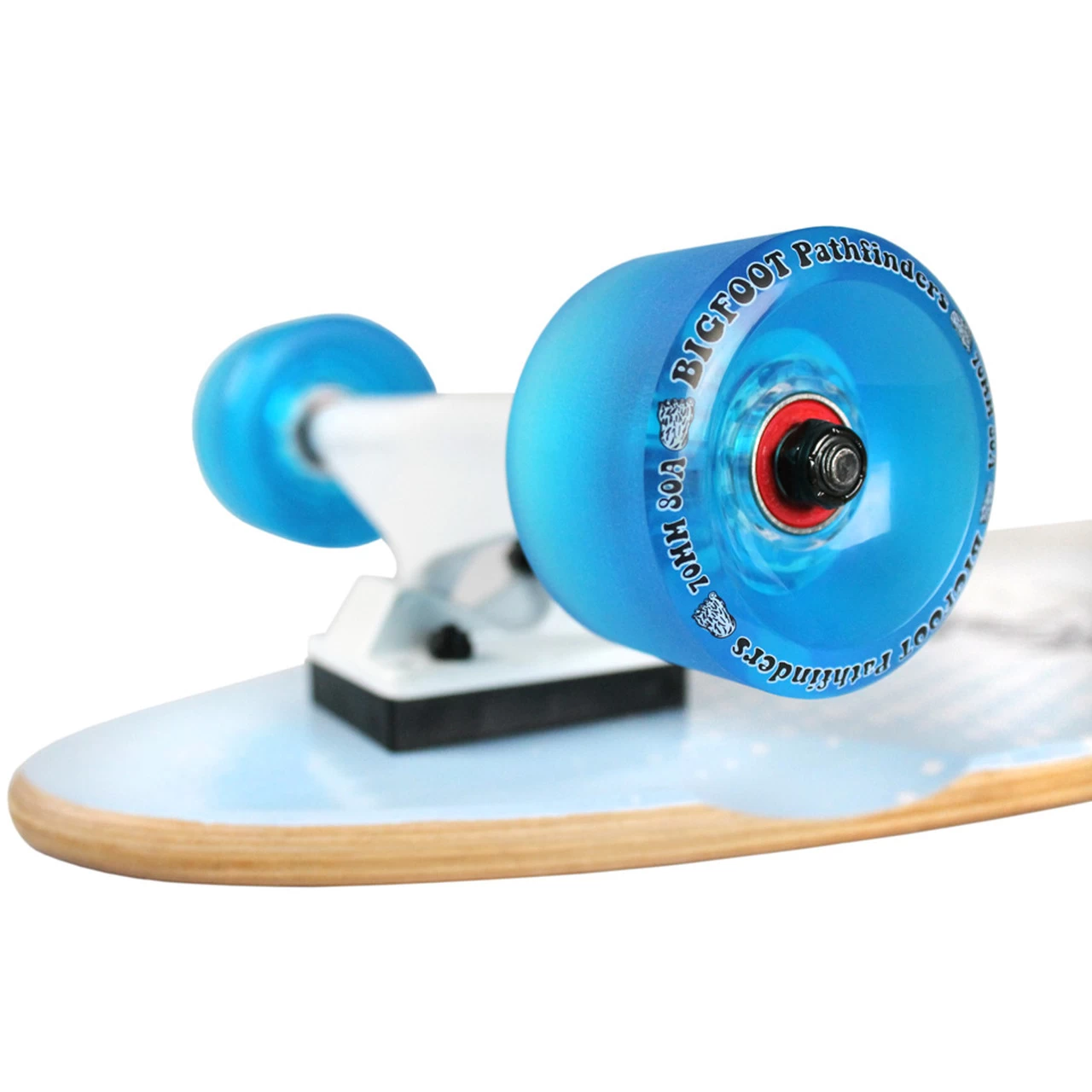 This is a classic Pintail shape. Comprised of 10 ply canadian maple, the deck measures 9″ x 47.75″ with a 32.5″ wheelbase. This complete is designed for anyone looking to ride downhill, take some big carves, or get from point A to point B in style. This complete will give you the flex you are looking for and will satisfy your need for speed. The Bigfoot Stone-Ground Pathfinders offer a newly modified super high rebound formula and shape. This new shape was chosen based on rider feedback, and is the first wheel in the Bigfoot line to offer a stone-ground finish. The 83a hardness and 45mm wide footprint make the pathfinders perfect for the rider looking for a nice sized wheel that will perform at speed and slide right off the bat. The board is complete with high-grade, strong aluminum alloy trucks, high rebound bigfoot wheels, Abec-7 Speed Bearings, Hardware, Risers, and Black Diamond Griptape.. Board Specifics:. Size: 9″ x 47.75″. Type: Pintail. Graphic: MAVRICKS. Construction: Canadian Maple. Trucks: 7.0 (9.75″). Bigfoot Wheels: 70mm 83A Pathfinders. Grip: Black Diamond Die-Cut