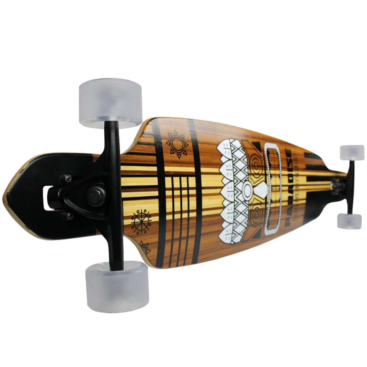 Paradise Longboard 9.5″ X 44″ Bamboo Tiki Face Drop Through Pintail