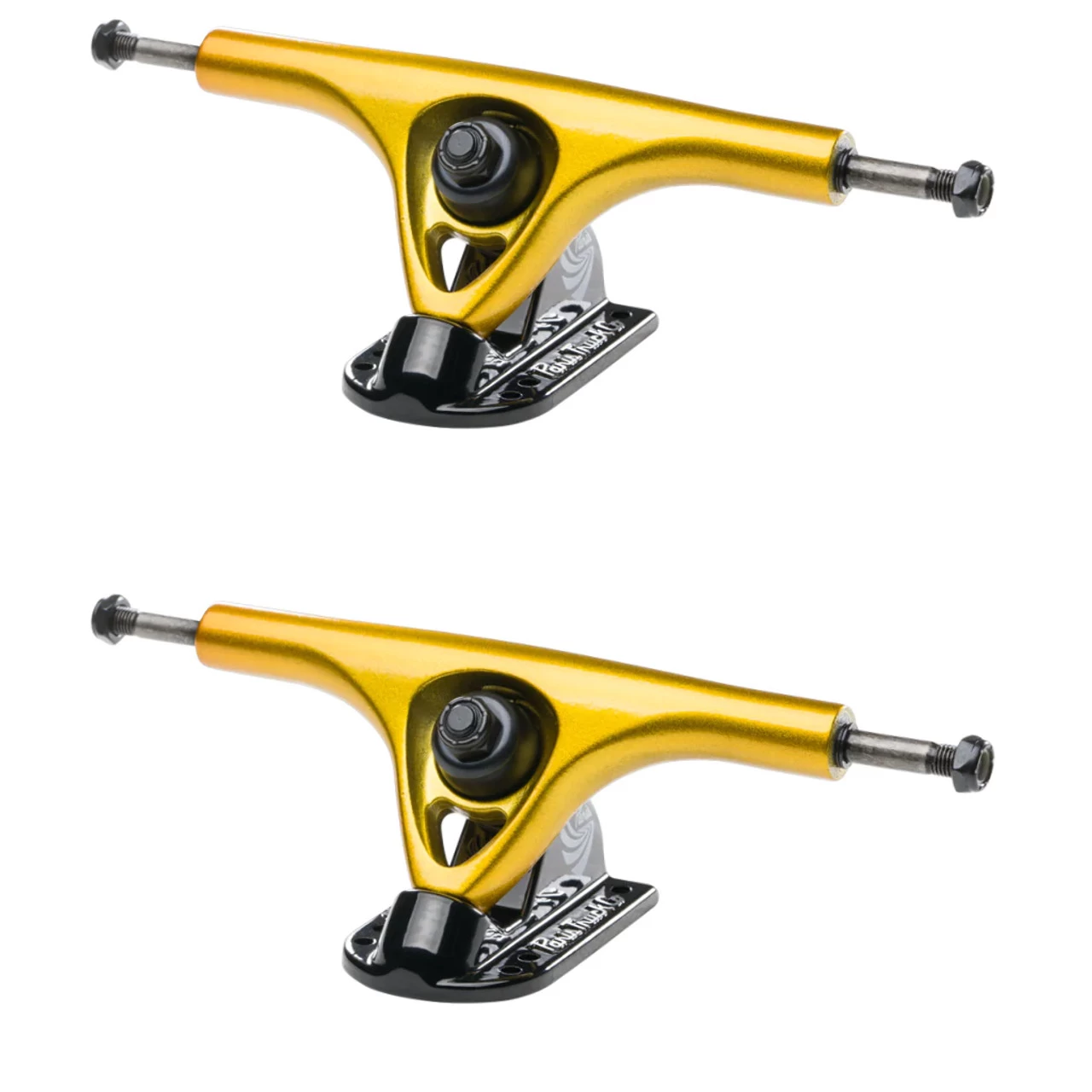 The Paris V2 180mm trucks are your all-around “go anywhere, do anything” trucks perfect for any terrain. Able to handle anything and everything you can throw at them the 180mm hanger is the perfect go-to size for most decks and compliments all riding styles. The open, unrestrictive bushing seat provides a full tilt turn that’s perfect for a smooth, carvy setup. As the most refined longboard truck on the market these trucks look as great as they ride!