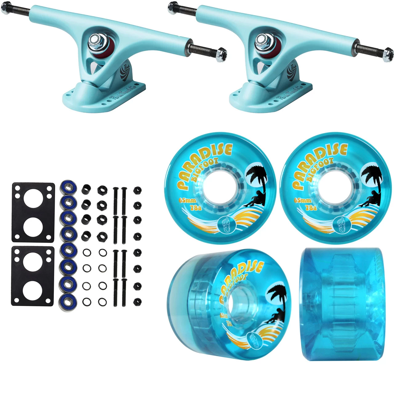 This professional quality longboard package contains everything you need to upgrade your set up, or build a new one. Paris V2 180mm Trucks, Bigfoot wheels, Abec 7 Bearings, 1.5″ Hardware, and 6mm Risers are included with this “Just add wood” package.