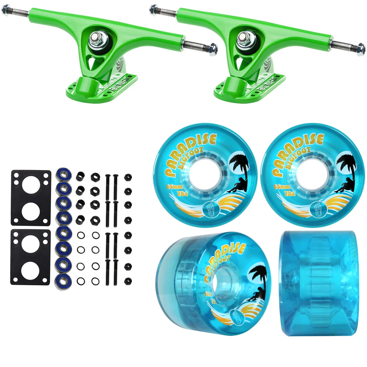 Paris Longboard Trucks, Wheels, Hardware, And Abec 7 Bearings Kit – V2 180 Green + Bigfoot 65mm 78A Blue