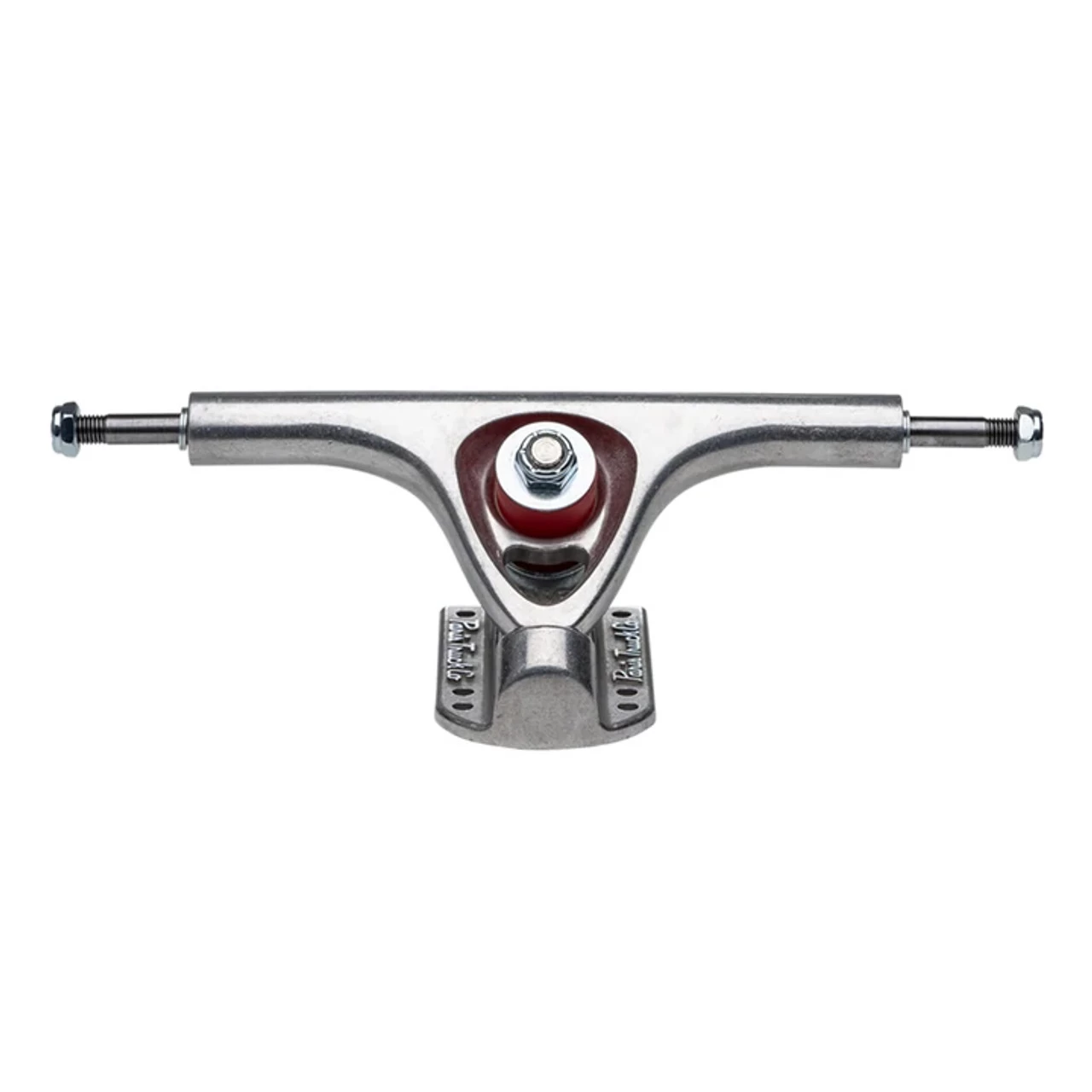Featuring a more lean-oriented geometry, the Paris V3 43° trucks are the ideal choice for fast freeride and downhill—a perfect balance of agility and stability. The lower-degree baseplate, combined with our 90a double barrel bushings, offers more control at higher speeds. The V3s are produced using new, proprietary alloy forming process, which utilizes techniques derived from casting, extrusion and forging. This gives the V3 a molecular structure that provides strength far beyond any other cast truck on the market. The new manufacturing process also allows use of true T6 heat-treatment, offering further durability. With redesigned hanger’s barrel and shoulders adding more material, and reinforced the baseplate with an additional support beam to increase strength and reduce acute stress to the area. Even a modified kingpin making it tougher and more resilient. Even the urethane components of the truck have been upgraded! The top conical bushing’s new shape offers improved support and rebound, and the baseplates now come equipped with hand-poured, 96a urethane pivot cups, which provide an ultra-smooth turn and return to center. The Paris V3 Features: Proprietary Alloy Forming Process, True T6 Heat Treatment, Stronger, Redesigned Hanger, SCM440 Alloy Steel Axles, Improved 90a Urethane Bushing Formula, Redesigned Conical Bushing Shape, Lighter, Reinforced Baseplate, Redesigned SCM435 Alloy Steel Kingpins, 96a Hand Poured Urethane Pivot Cups, Matches Ride Height of our 43° Baseplates, 50° Baseplate Marker Symbols.