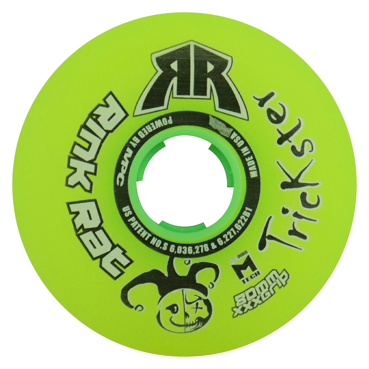 Trickster, the new game ready and game changing wheel from Rink Rat. Rink Rat uses a special blend of proprietary MTech and Magic Speed materials in the core and exterior providing unparalleled speed, grip and rebound on a tile surface. No break in period necessary for this wheel. The materials of iHub5 are of the highest quality and, just like the rest of the wheel, is now manufactured in Rhode Island, which makes these wheels 100% made in the East Coast of the USA. The natural bond of our urethane to the hub means that you’ll never have to worry about wheels coming out of their hub or blowing up.