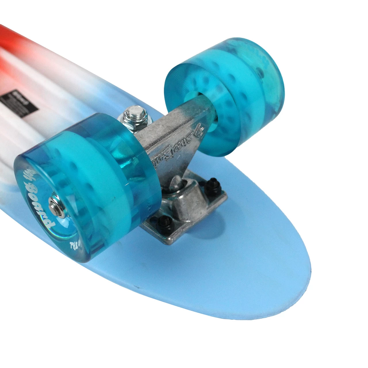 Spectrum Beach Boards are matte yet bright. These amazing spray top and bottom painted mini cruisers will show off underneath the feet of any street surfer. Make you ride unique and irreverent as it can be. Measures 6.3” x 22.5”. Features a PP traction matte painted pattern deck with embossed aluminum 3.25 trucks and 60mm cruiser wheels with abec 7 bearings.